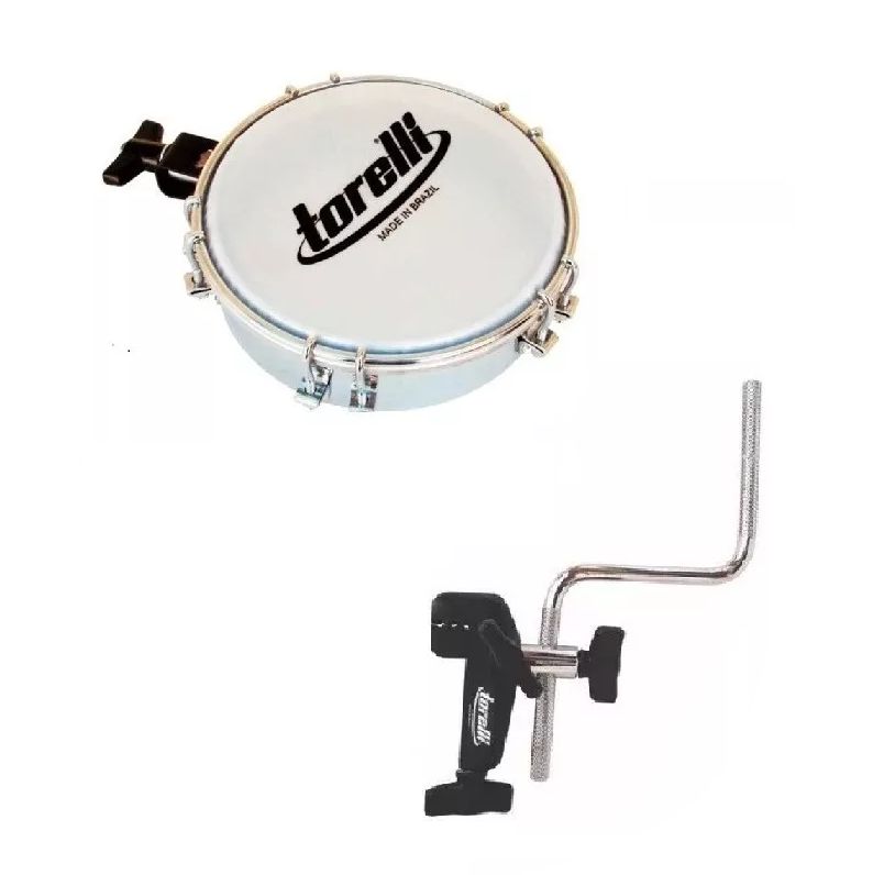 Kit Tamborim Com Presilha + Multi Clamp Para Aro De Bateria