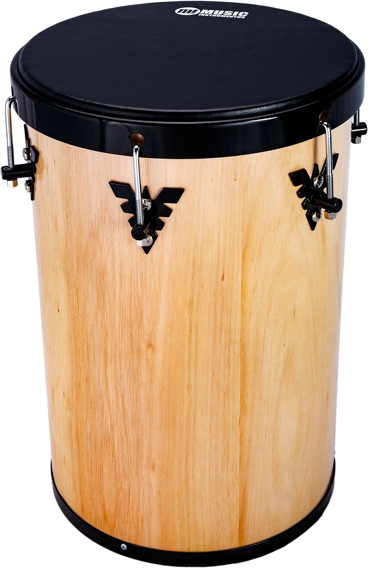 - Rebolo de madeira com ferragens pretas.