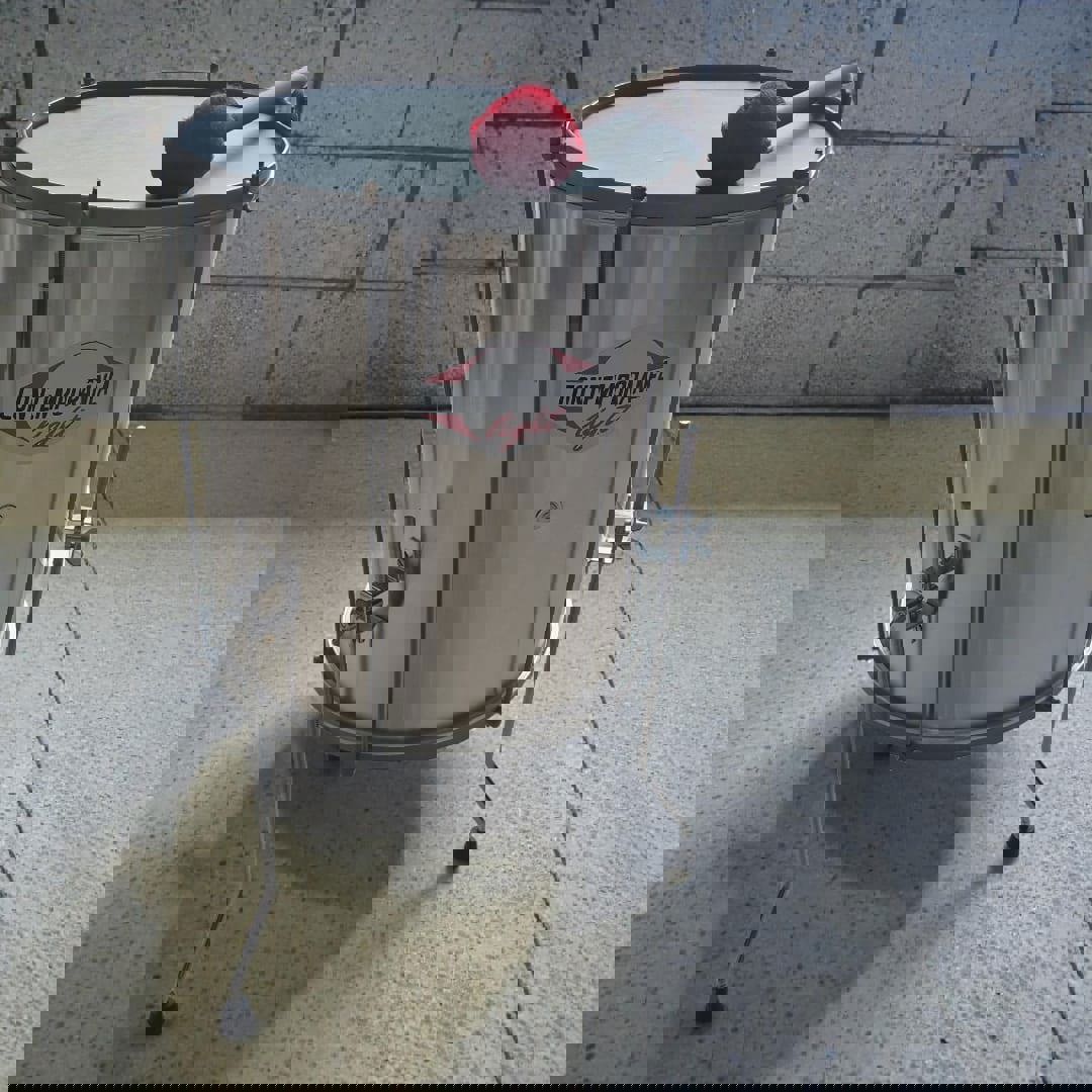 - Surdo com pele em Napa - Corpo em alumínio - Tripé com regulagem de altura - Fabricante Contemporânea - Modelo light 147ltt - Acompanha chave de afinação e maçaneta